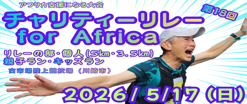 - 2026年5月17日(日)多摩川河川敷 走って繋いでアフリカ支援のリレー大会